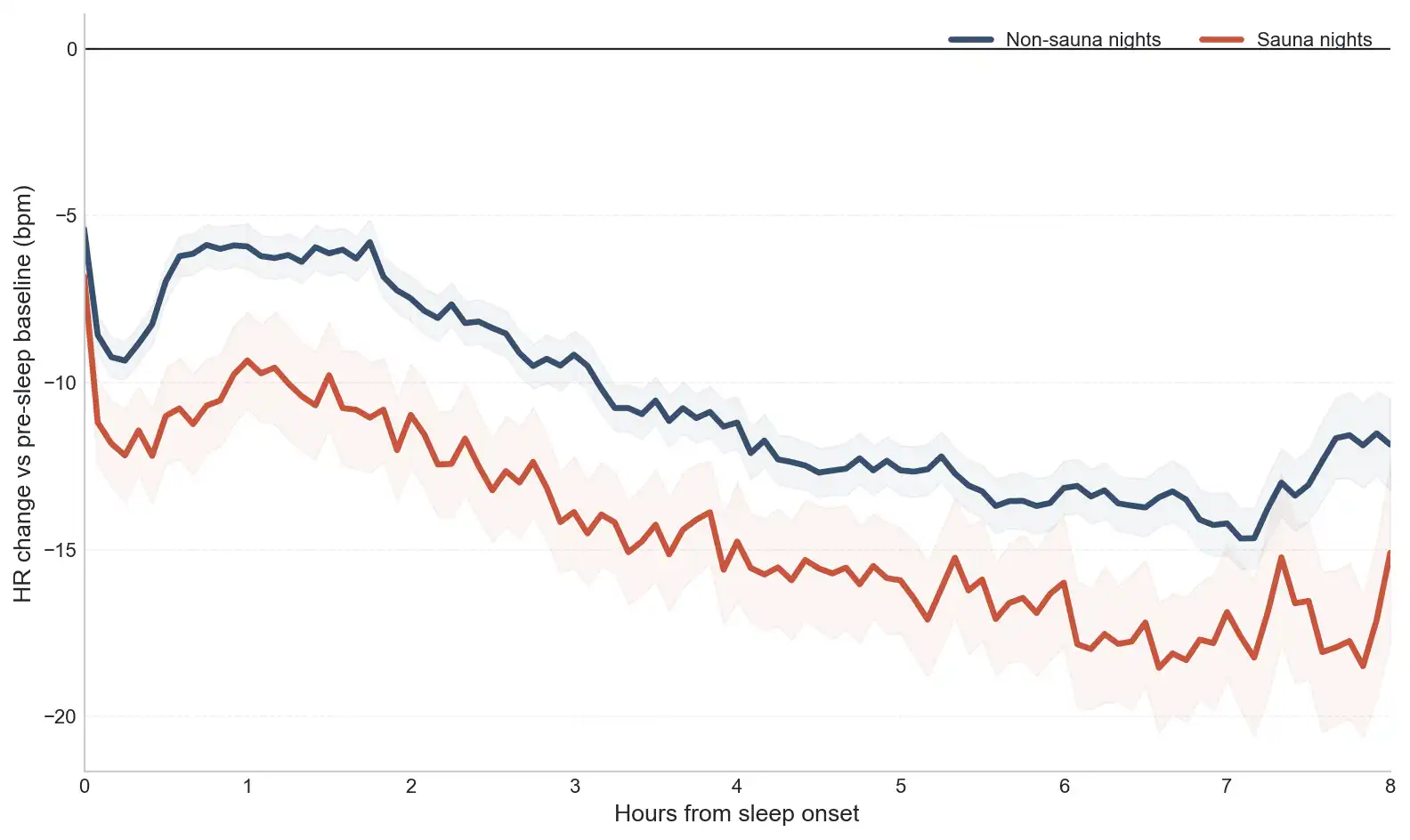 Show HN: Saunas lower nighttime heart rate more than exercise (n=59,000)